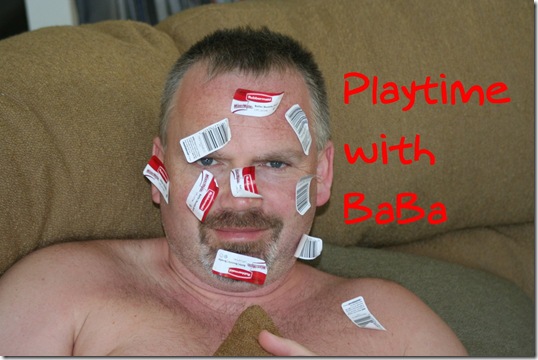 ReplyDeleteThat's funny! What a good daddy. I hope those stickers didn't get on his chest or arm hair....ouch!